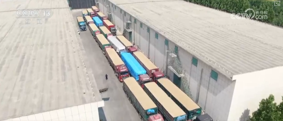 节日前夕,总台记者在粮食主产区山东的粮油重点保供企业中裕食品产业园看到,这里进入“双高峰”模式,保供货车川流不息,新产原粮还在调运。
