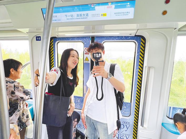 孙宁晨与金海体验光谷空轨。