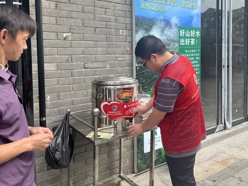 在“爱心茶水摊”前,志愿者们为过往的市民和游客递上一杯杯暖心茶水。“喝着这杯热茶,感觉心里都暖暖的,你们的服务太周到了!”一位接过茶水的游客连连称赞着这项暖心服务。