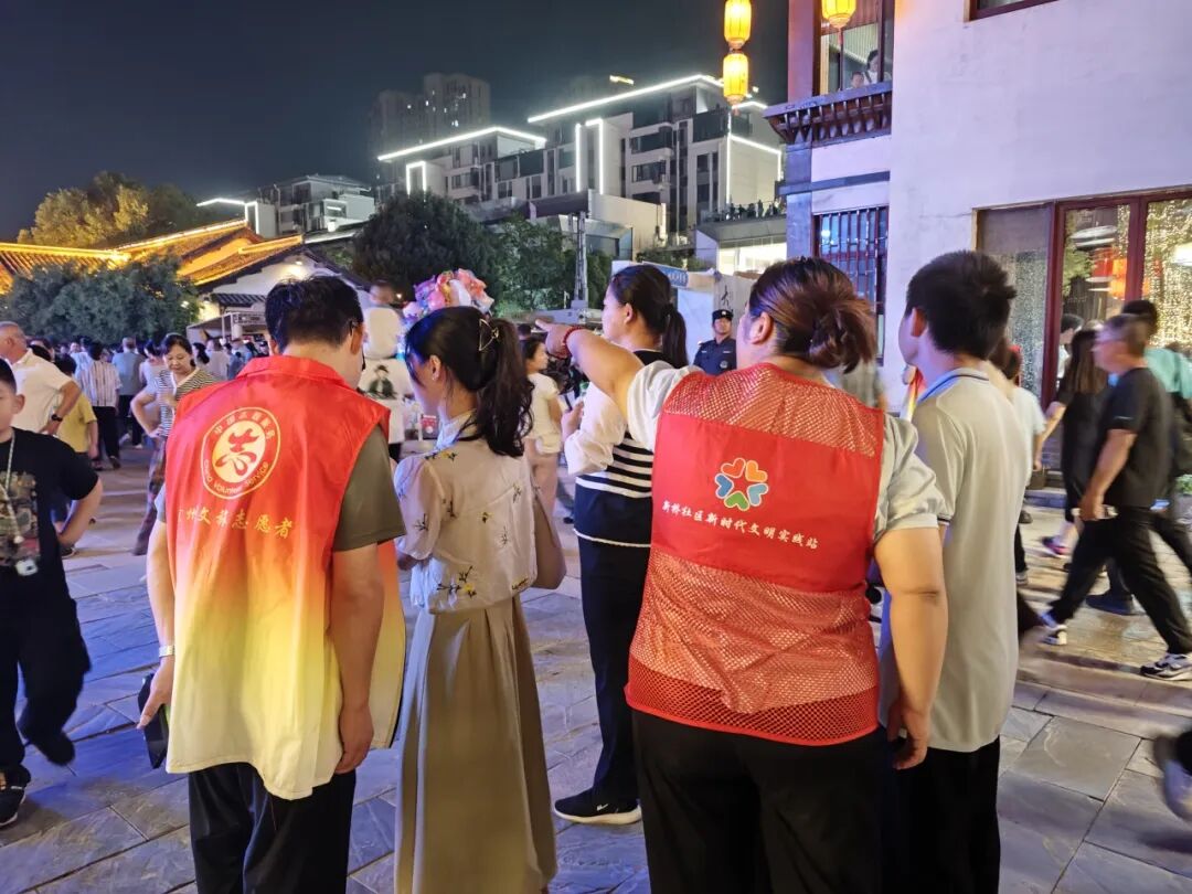 此时,身着红马甲的西湖街道志愿者们早已在人流中忙碌起来,他们微笑着逐一解答疑问,用贴心的服务护航“黄金周”活动开展。