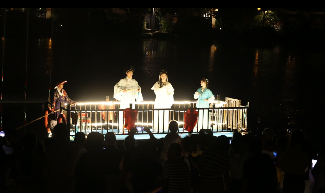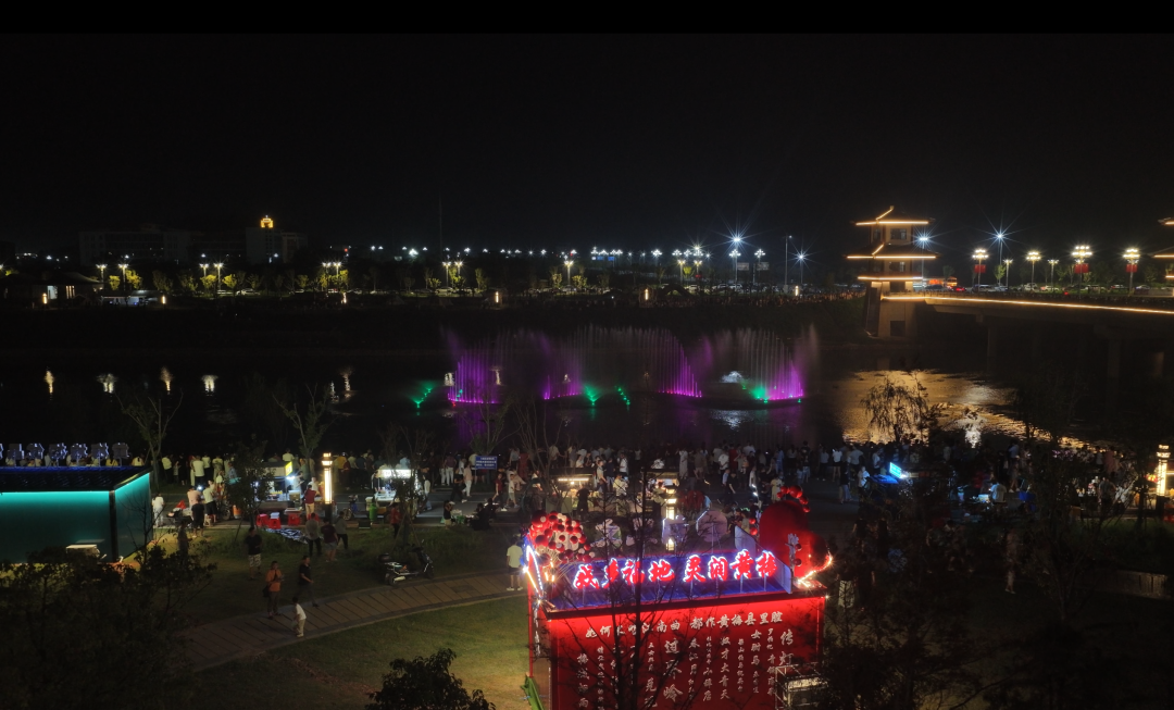 这场非遗与生活的相遇,从餐桌延伸至黄梅的每一个角落。夜幕降临,一河两岸的音乐喷泉随黄梅调起舞,银亮的水柱在灯光映照下,仿佛化作戏服上的锦缎纹路。