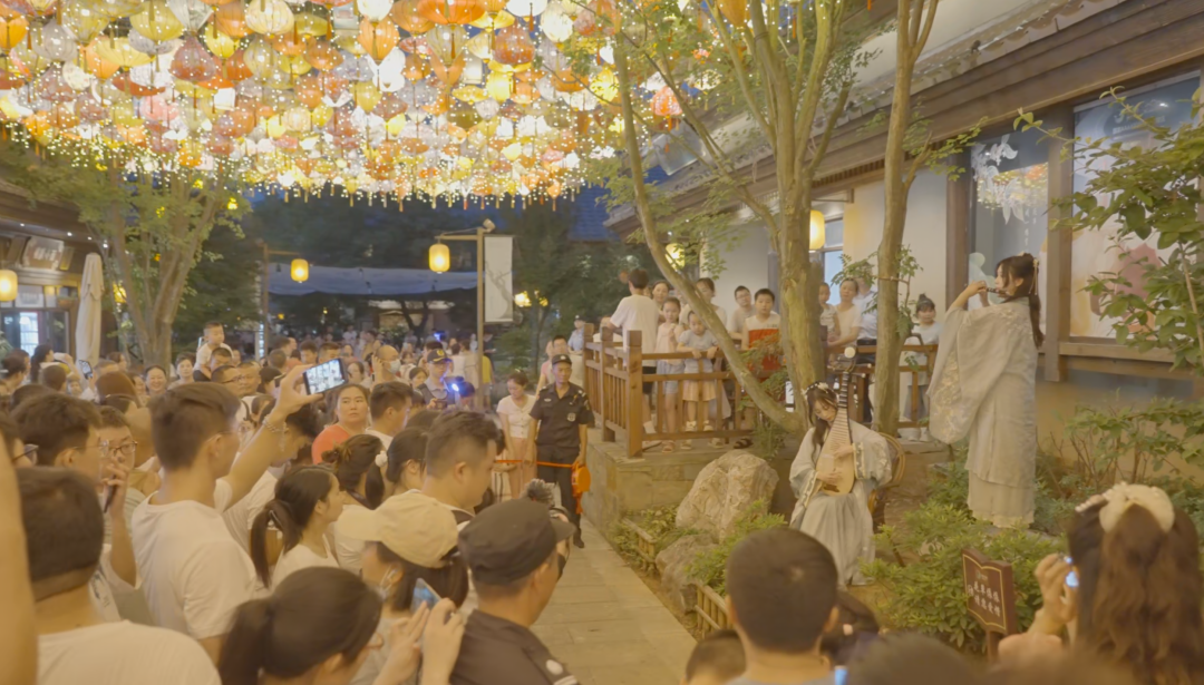 与此同时,“黄梅宴”每日两场沉浸式餐秀场场爆满,带动餐食消费实现显著增长。县商务局数据显示,重点商圈的夜间消费人气大幅提升,“非遗+餐饮+零售”的融合模式,正成功地将客流转化为实实在在的消费力。