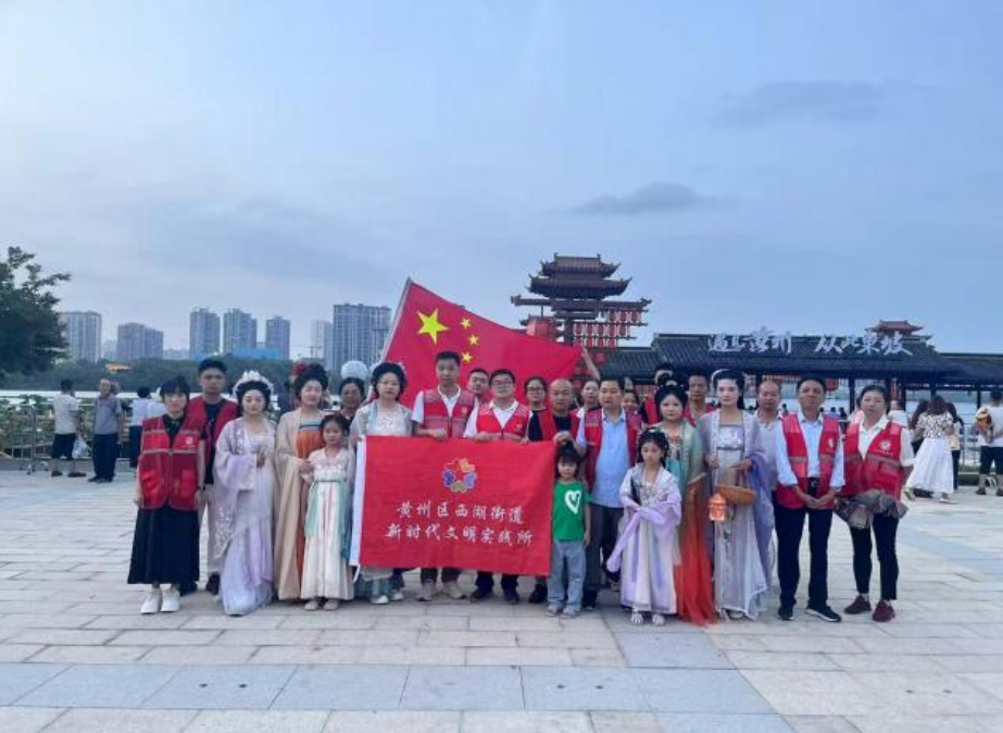在东坡赤壁、宝塔公园、遗爱湖等景区附近,每天清晨都能看到赤壁街道“东坡有爱”志愿服务队员们忙碌的身影:小小讲解员用清脆童声讲述赤壁历史典故,社区干部化身“安全卫士”疏导人流、提供资讯。志愿者们穿梭在人群中,递地图、送热水、帮扶特殊游客。