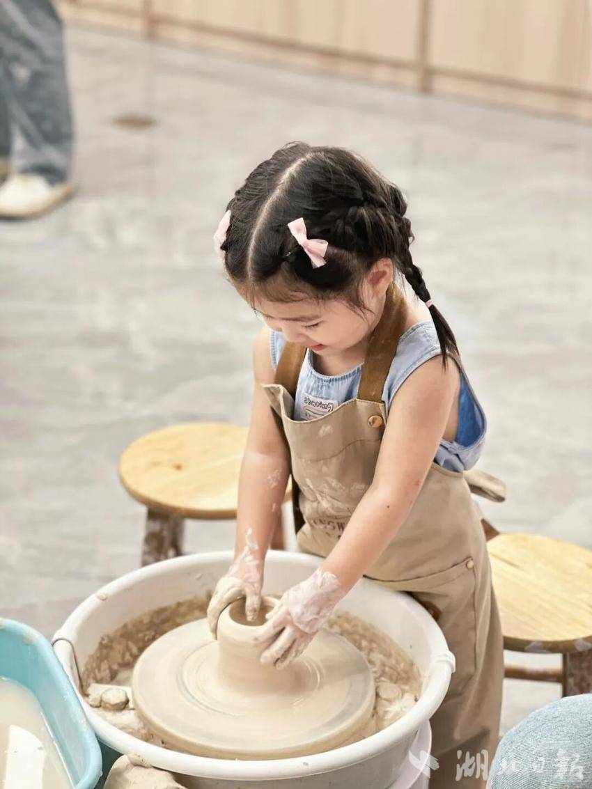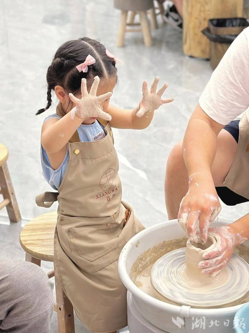 “放下手机,和孩子一起完成一件陶器,是特别温馨的亲子时光,比单纯的购物或玩电子产品更有意义。”带着女儿前来体验的市民王女士感慨道。